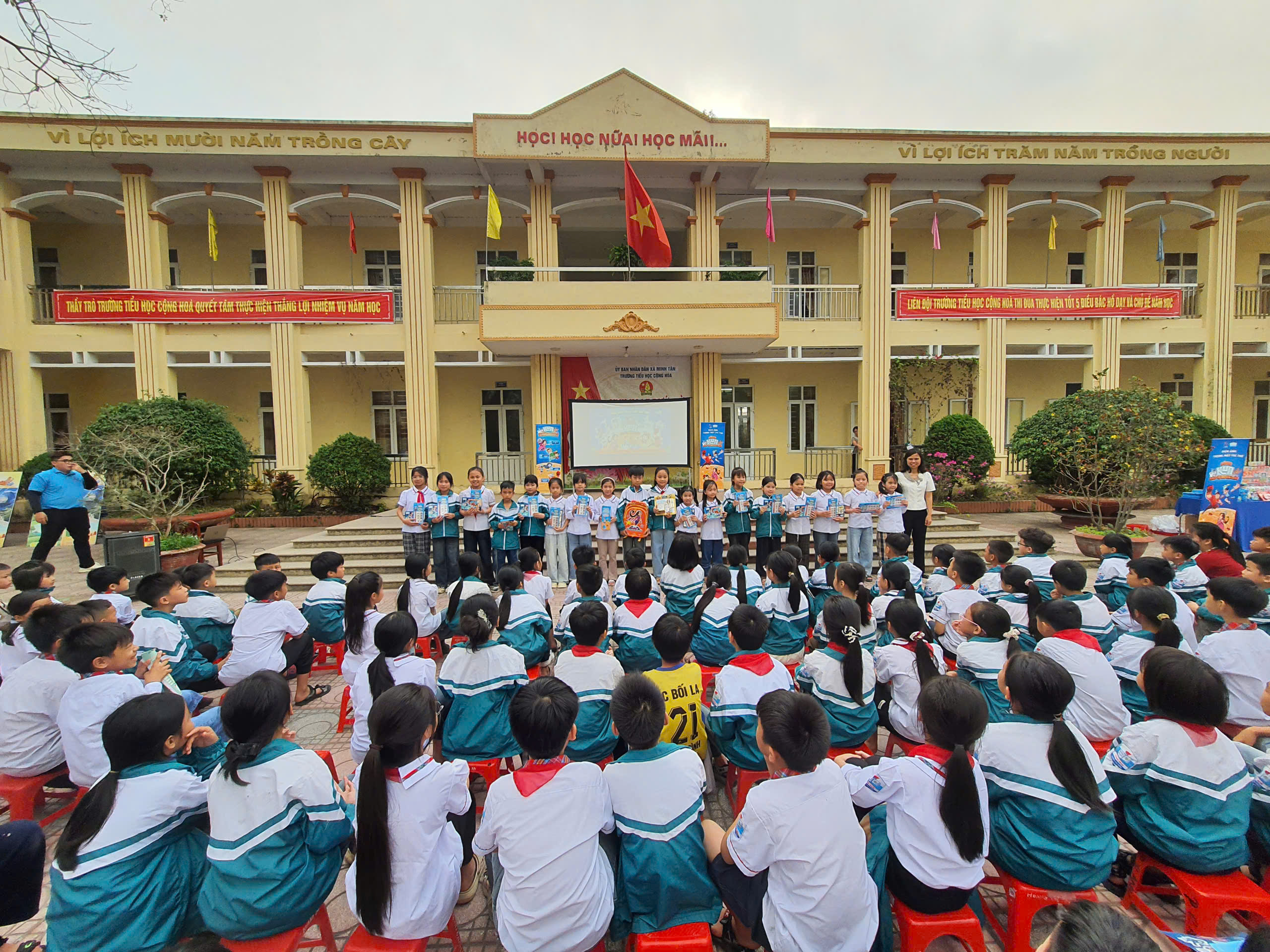 Sáng 24/3/2026, Ban chấp hành Đoàn xã Minh Tân phối hợp với Hãng phim Trẻ cùng nhãn hàng Kun tổ chức các hoạt động trải nghiệm: giáo dục kĩ năng sống Phòng chống đuối nước, giáo dục về bảo vệ muôn loài.Học sinh được xem phim minh họa cách phòng chống đuối nước; thi vẽ tranh bảo vệ muôn loài cũng như tham gia các hoạt động trải nghiệm hữu ích. Qua đó giúp học sinh nắm rõ hơn các hành động giúp bảo vệ môi trường và muôn loài xung quanh, giáo dục lòng yêu thiên nhiên, bảo vệ muôn loài cũng như thực hành một số kĩ năng phòng tránh đuối nước.